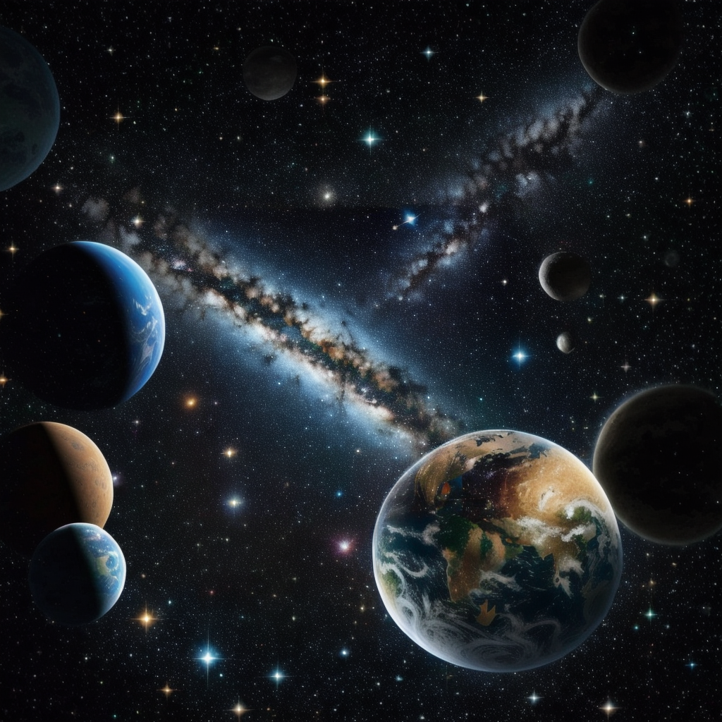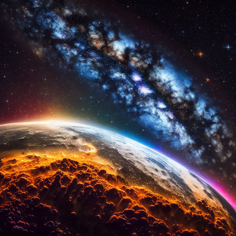 이 프롬프트는 지구와 달과 은하수가 어울어진 우주 사진을 생성합니다. 원하시면 다른 걸로 바꾸셔도 됩니다.