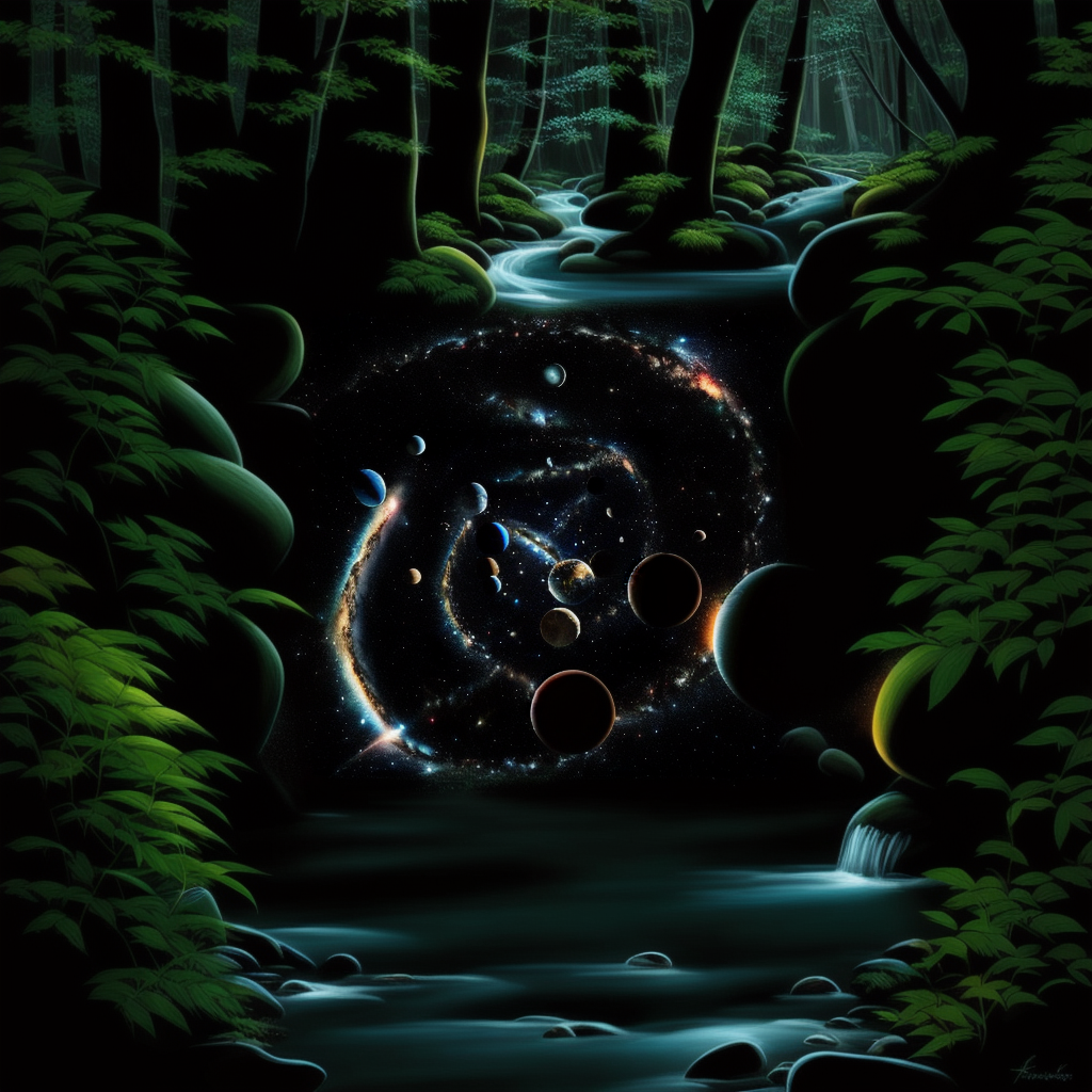 아래는 다른 것은 건드리지 않고 프롬프트만 바꾼 후, 4번을 돌린 결과입니다. 처음엔 우주의 모습이 보이지만, 점점 축소되어서 결국엔 깊은 숲 속만 나타납니다.