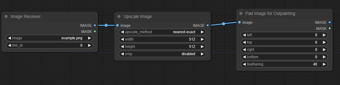 그 다음 이 이미지를 [Image Receiver] 노드에서 받고, 이 크기를 줄인 뒤, 바깥부분에 아웃페인팅을 위해 이미지 바깥쪽 채워줍니다.