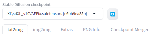 Stable Diffusion Checkpoint 드롭다운에서 SDXL 기본 모델(sd_xl_base_1.0) 을 선택합니다.