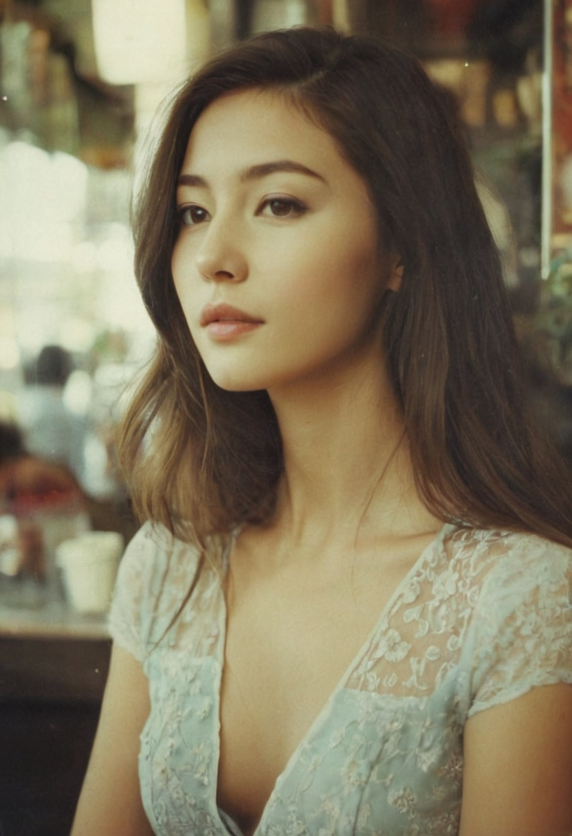 프롬프트 : a realistic photo of a beautiful asian woman, in cafe, long hair, close-up, detailed face,