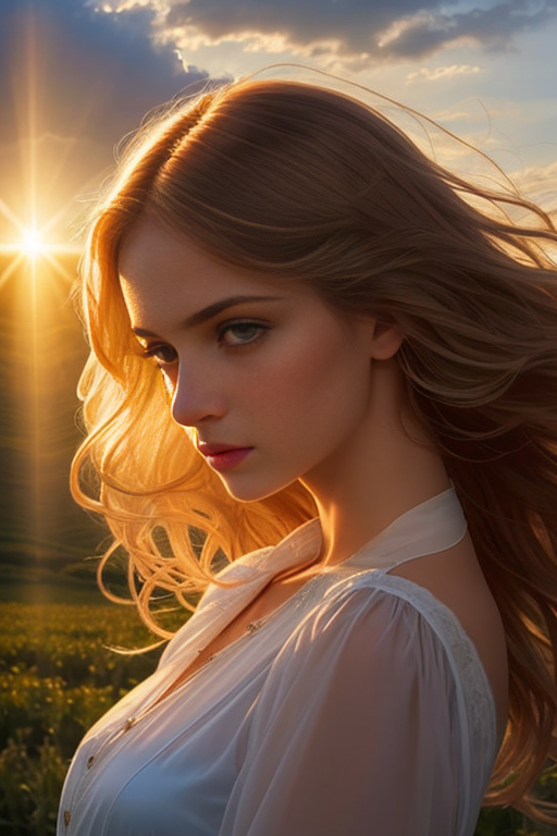 fashion photography, a woman, Crepuscular rays