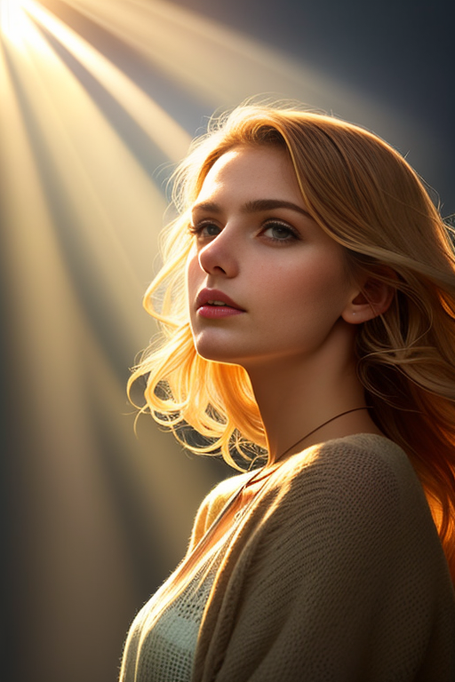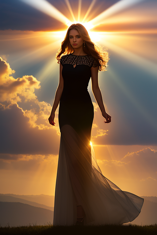 fashion photography, a woman, Crepuscular rays