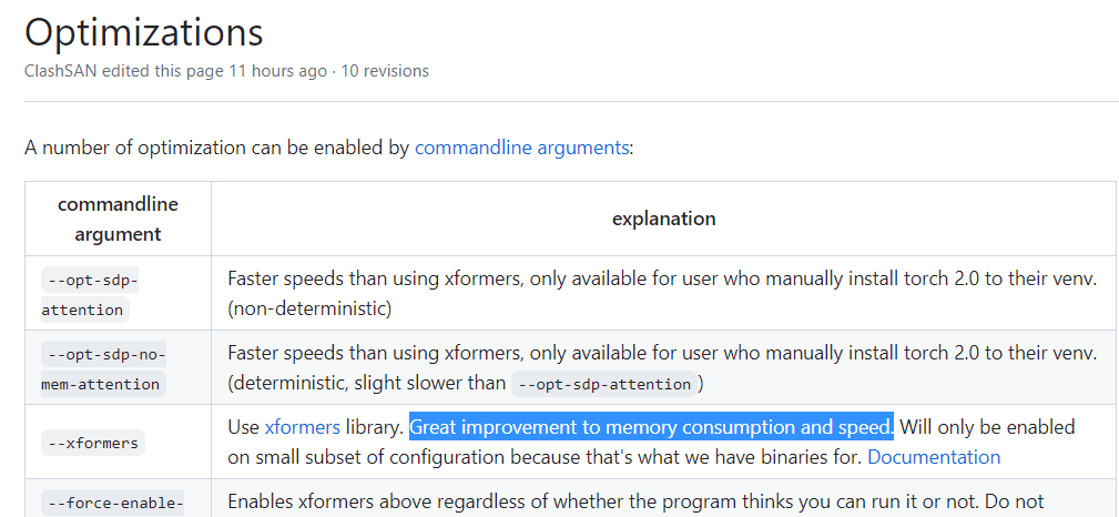 아무튼 그래서 메모리 문제를 해결하려고 AUTOMATIC1111에서 Settings 부분을 찾아보다가 너무 복잡해서 포기하고(Easy Diffusion에서는 메모리 사용량을 제어하는 설정이 있었는데...ㅠㅠ) AUTOMATIC1111 최적화 문서를 보니 xformers를 사용하면 아래처럼 메모리 사용량이 줄면서도 속도가 올릴 수 있다고 하니 바로 해봤습니다.
