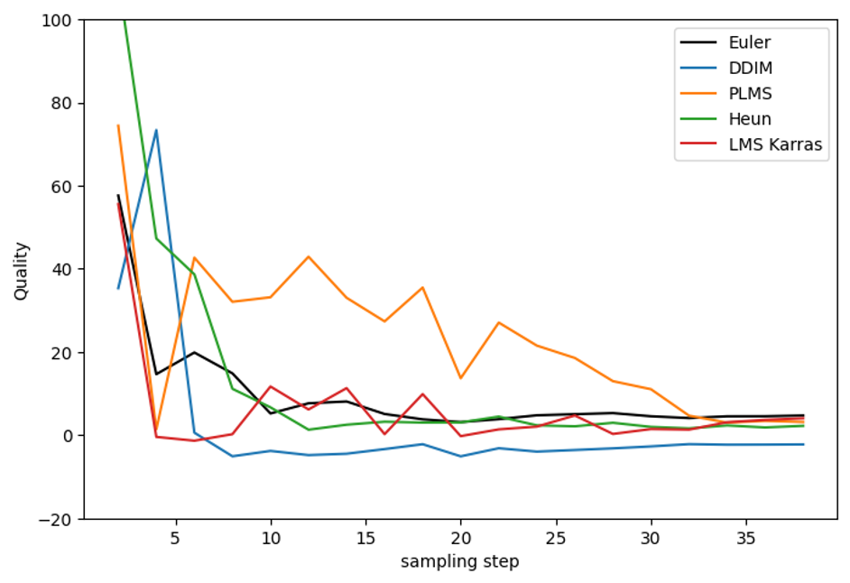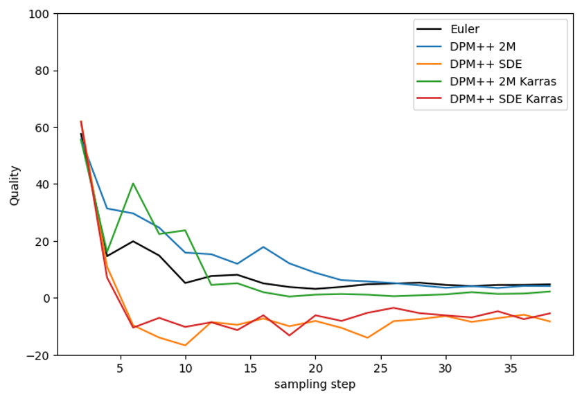 DPM2 샘플러 계열은 Euler 샘플러보다 약간 성능이 좋지 않습니다.