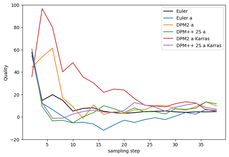 DPM++ SDE 및 DPM++ SDE Karras는 이미지 품질 면에서 가장 뛰어난 것으로 평가되었습니다.