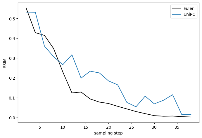 UniPC는 Euler에 비해 약간 느리게 수렴되지만, 그다지 나쁜 편은 아닙니다.