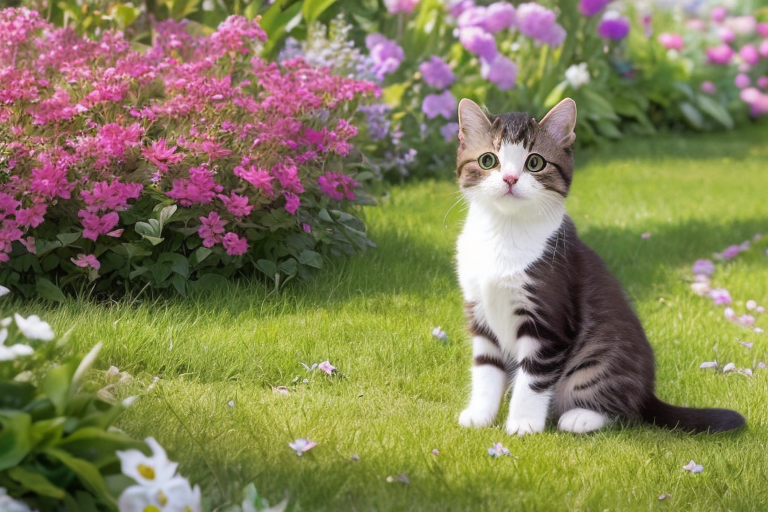 프롬프트: a cute kitty, in a garden, (extremely detailed CG unity 8k wallpaper)