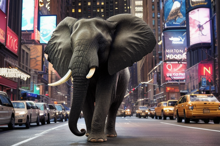 프롬프트: National Geographic Wildlife photo of the year, elephant trunk pointing up in new york city, night, dark studio, depth of field, trunk pointing up