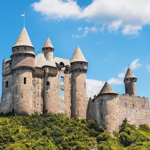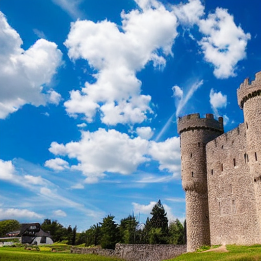 프롬프트: castle, blue sky background