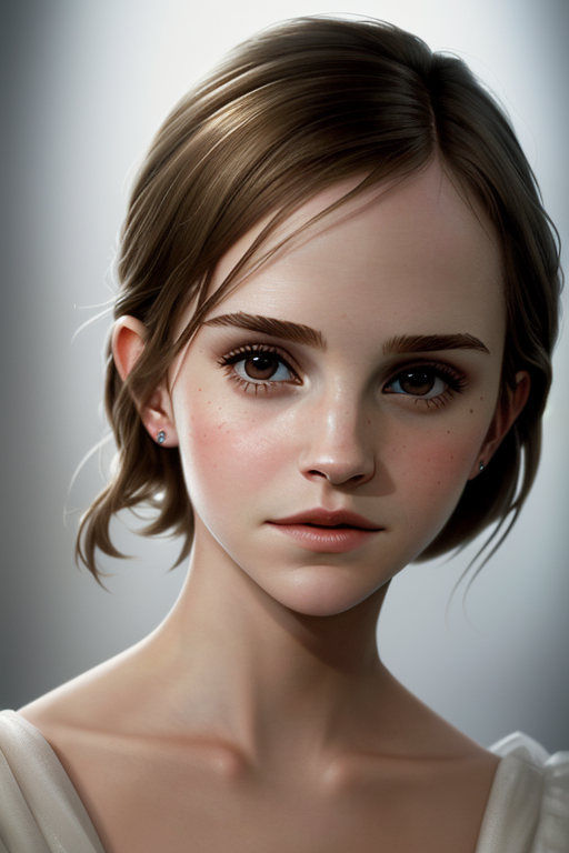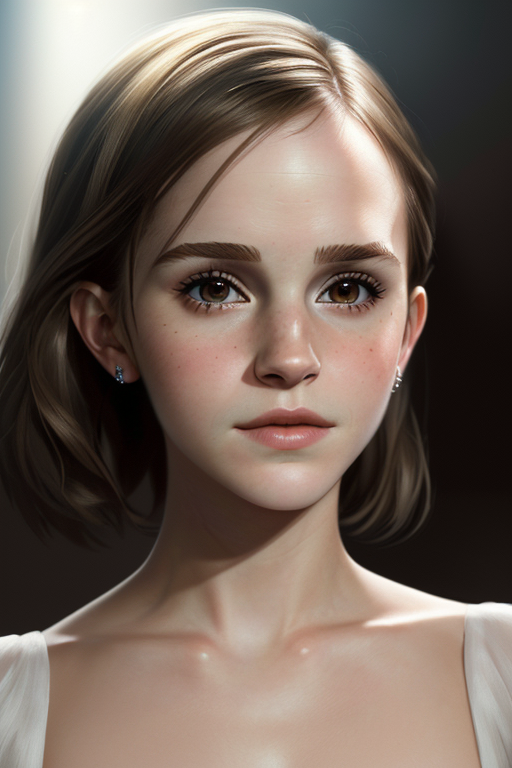 프롬프트: photo realistic portrait of [Emma Watson: Natalie Portman: 0.6], exquisitely rendered, stunning artistry, grace, enigmatic aura, rim lighting, Meticulous attention, masterful brushwork