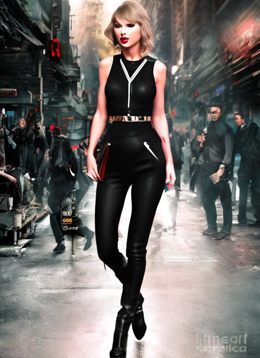 프롬프트 : full body Taylor Swift in future high tech dystopian city