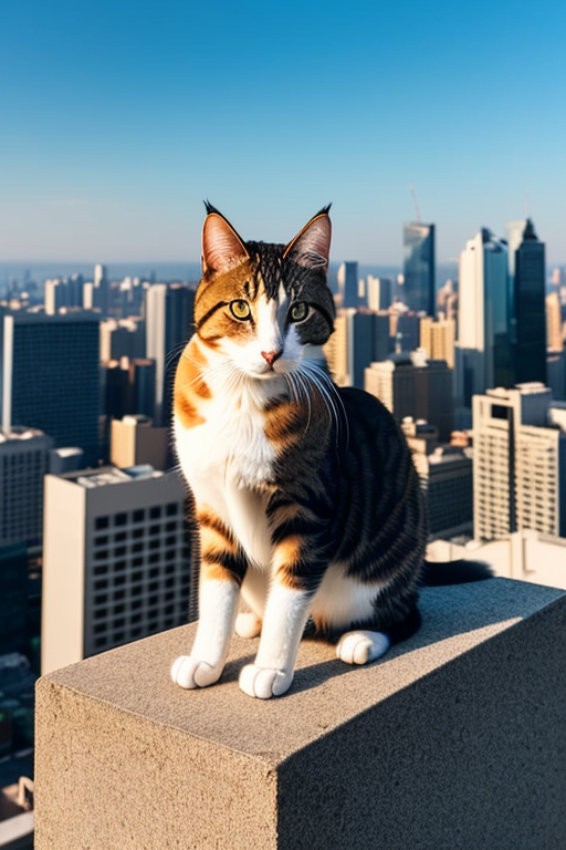 따라서 "A photo of a cat sitting on top of a building"과 같은 프롬프트를 입력하면 아래와 같은 이미지를 생성해줍니다.
