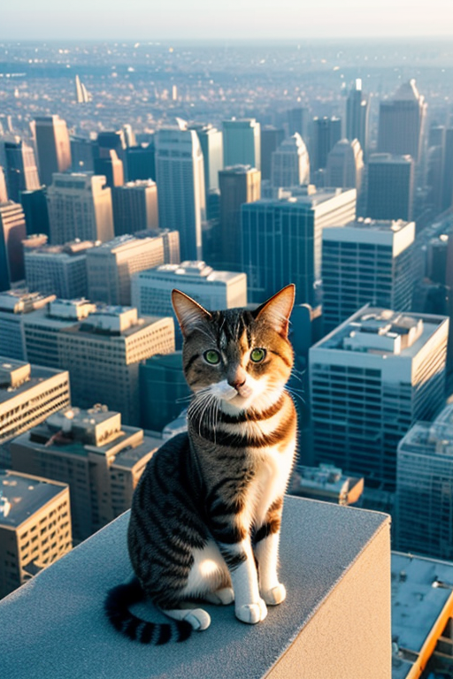 따라서 "A photo of a cat sitting on top of a building"과 같은 프롬프트를 입력하면 아래와 같은 이미지를 생성해줍니다.