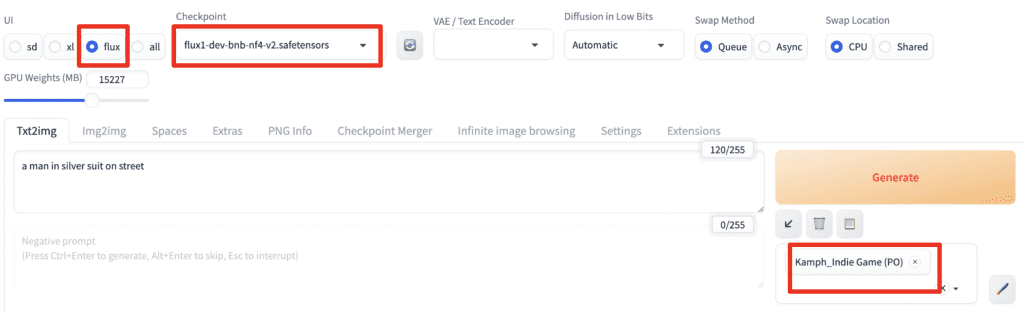 - Flux AI 모델을 Forge에 설치해야 합니다.