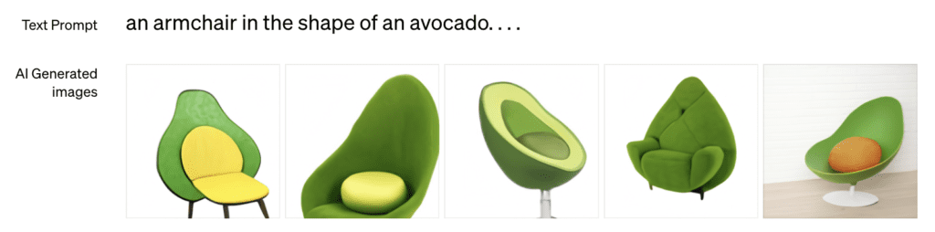 Open AI에서 개발한 DALL-E는 대중의 관심을 많이 받은 최초의 txt2img 모델중 하나입니다. 현재 기준으로 볼 때 그 당시의 이미지 생성은 초보적으로 보이지만, 2021년 출시당시에는 엄청난 혁신이었습니다. 최초로 자연어 설명을 따르는 이미지를 생성할 수 있었기 때문입니다.
