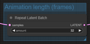 워크플로 아래쪽에 보면 [Repeat Latent Batch]노드가 있는데, 여기에서 설정하는 값은 프레임 수입니다.