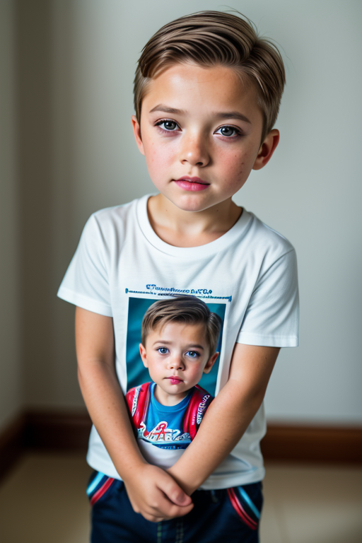 프롬프트: 2 year old boy, t-shirt, rim lighting, side lighting, looking at the camera, dslr, ultra quality, sharp focus, tack sharp, dof, film grain, Fujifilm XT3, crystal clear, 8K UHD, highly detailed glossy eyes, high detailed skin, skin pores