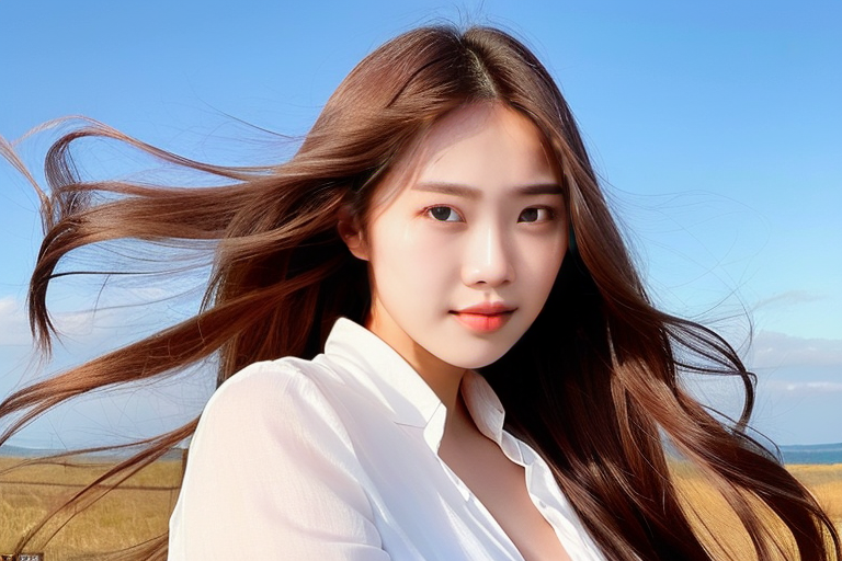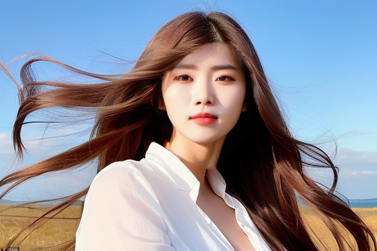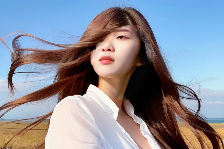 마찬가지로 [Interrogate CLIP]버튼을 눌러 프롬프트를 알아봅니다. 위의 이미지는 "a woman with long hair standing in a field of grass with a blue sky in the background and a field of grass in the foreground, Du Qiong, white background, a stock photo, aestheticism"이라고 나오네요.