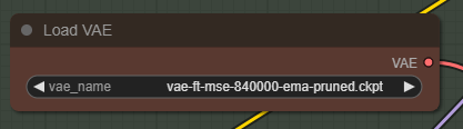 이 워크플로는 Stability.ai 사의 표준 VAE인 FT-MSE-840000 VAE 모델을 사용합니다. 다운로드 받고 ComfyUI\models\vae 폴더에 넣어줍니다(AUTOMATIC1111과 모델을 공유할 경우 이 글을 보세요) 그 다음 화면을 새로고침(F5)하고 [Load VAE] 노드에서 선택합니다.