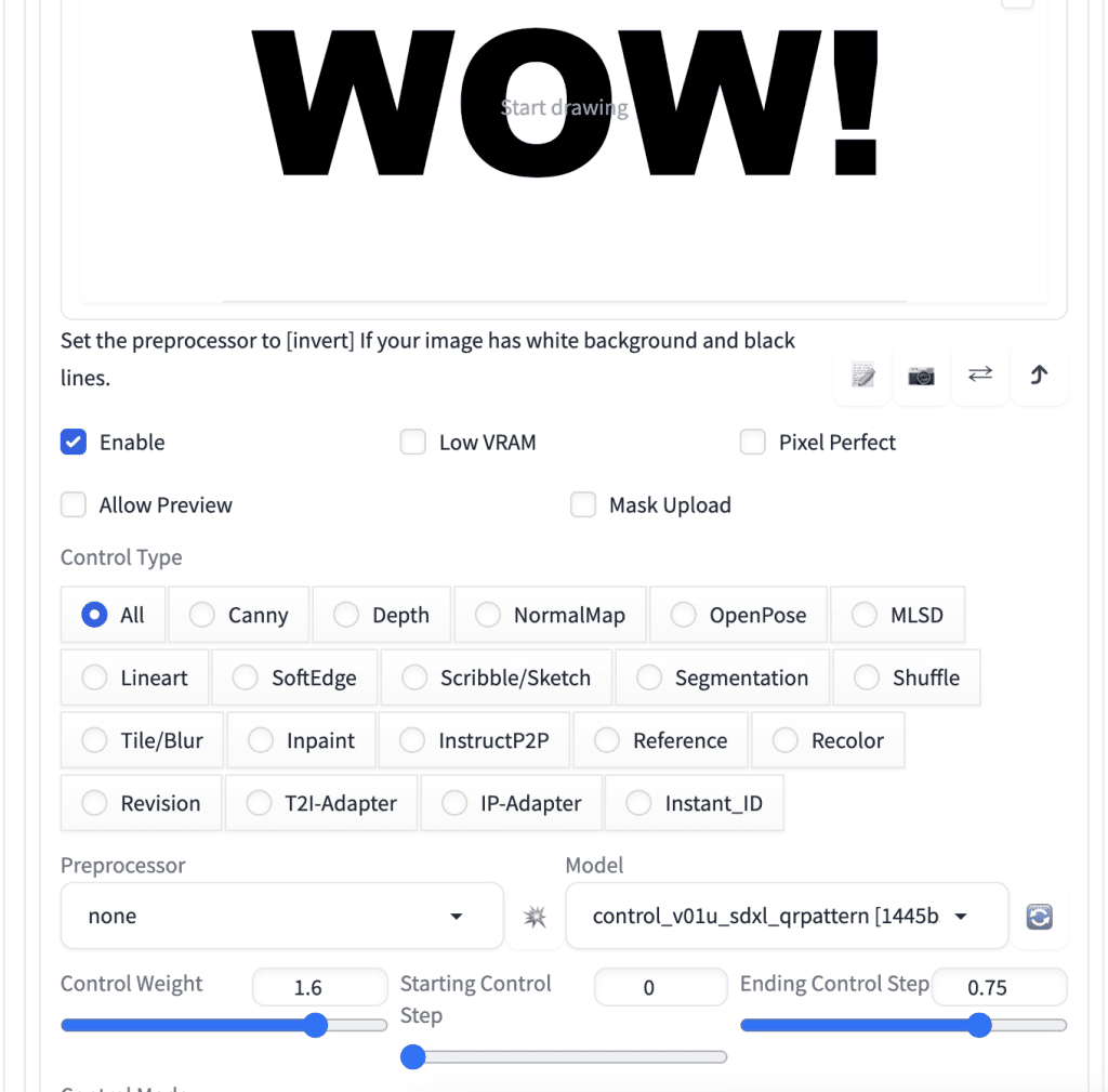 또한 QR Patern SDXL ControlNet 모델이 필요합니다. 다운로드 받아서 stable-diffusion-webui\models\ControlNet 폴더에 넣어줍니다.