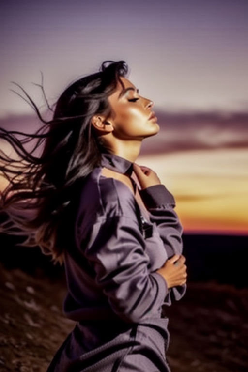 아래는 이렇게 IP-adpater를 적용하여 생성된 결과입니다. 검은색 파일럿 복(텍스트 프롬프트)와 뒤쪽으로 수평선이 보이고 옆쪽을 바라보는 여성(이미지 프롬프트)가 모두 적용되었음을 알 수 있습니다.