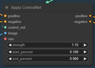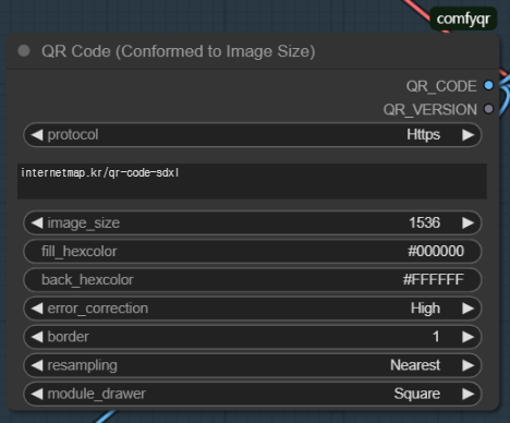 [Apply ControlNet] 노드의 세가지 입력값이 모두 QR-code가 얼마나 나타나는지를 결정합니다.