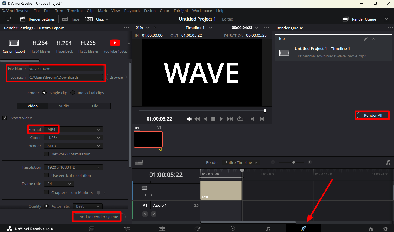 파일명과 저장 위치를 선택하고, 비디오 포맷은 MP4를 선택합니다. 다음으로 [Add to Render Queue]를 클릭하고 우측의 [Render All] 버튼을 눌러주면 텍스트 애니메이션 비디오가 생성됩니다. 아래가 이렇게 생성한 MP4 비디오입니다.