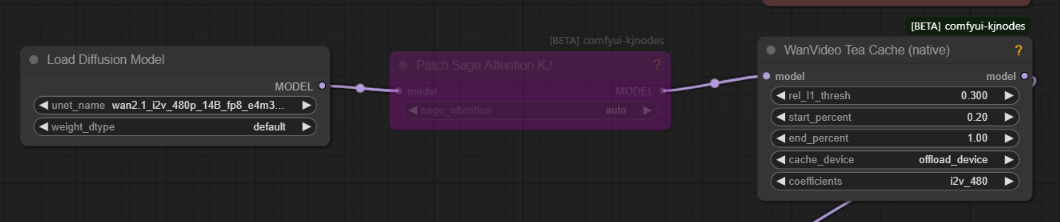 이 워크플로는 KJNodes의 Sage Attention과 Teacache 노드를 사용합니다. 이를 통해 원래의 Wan 2.1 워크플로보다 약 30% 정도 빠르게 수행됩니다.