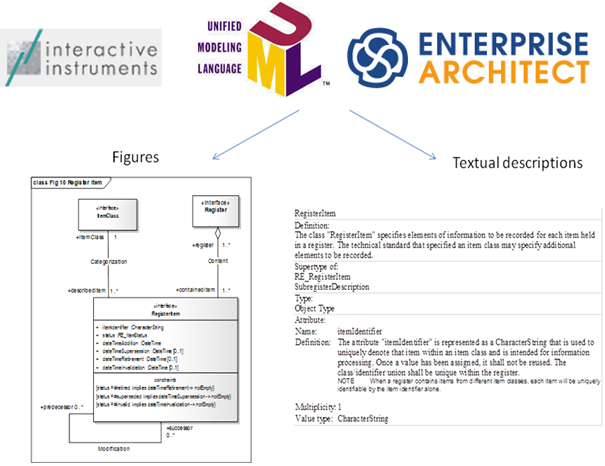 어떤 특별 그룹(ref ISO/TC 211 resolution 633)에서는 2013년, ISO TC/211 표준의 모델-파생 문서화에 대해 연구하였다. Enterprise Architect 및 ShapeChange를 위한 템플릿이 개발되었으며, github.com/ISO-TC211/UML-Best-Practices/wiki/DocumentationOfUmlModels 에서 볼 수 있다. 템플릿은 많이 사용되지 않았으며, 아마도 ISO 19135-1에서만 사용되었다. 하지만, ISO 19170-1은 EA로부터, EA => ShapeChange => Metanorma => ISO 문서 로 생성된 바 있다. 이 특별 그룹은 모델-파생 문서화에 대한 접근법 및 ISO/TC 211 표준화 프로젝트에서 활용하는 방법에 대해 연구할 것이다.