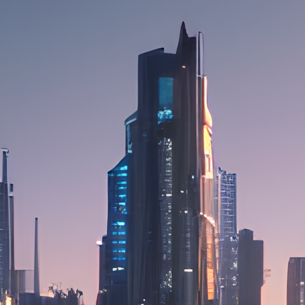 프롬프트: Hyper-realistic photo, futuristic city, evening sunset, procession of flying cars, reflection of city in lake, mountains in distant background.