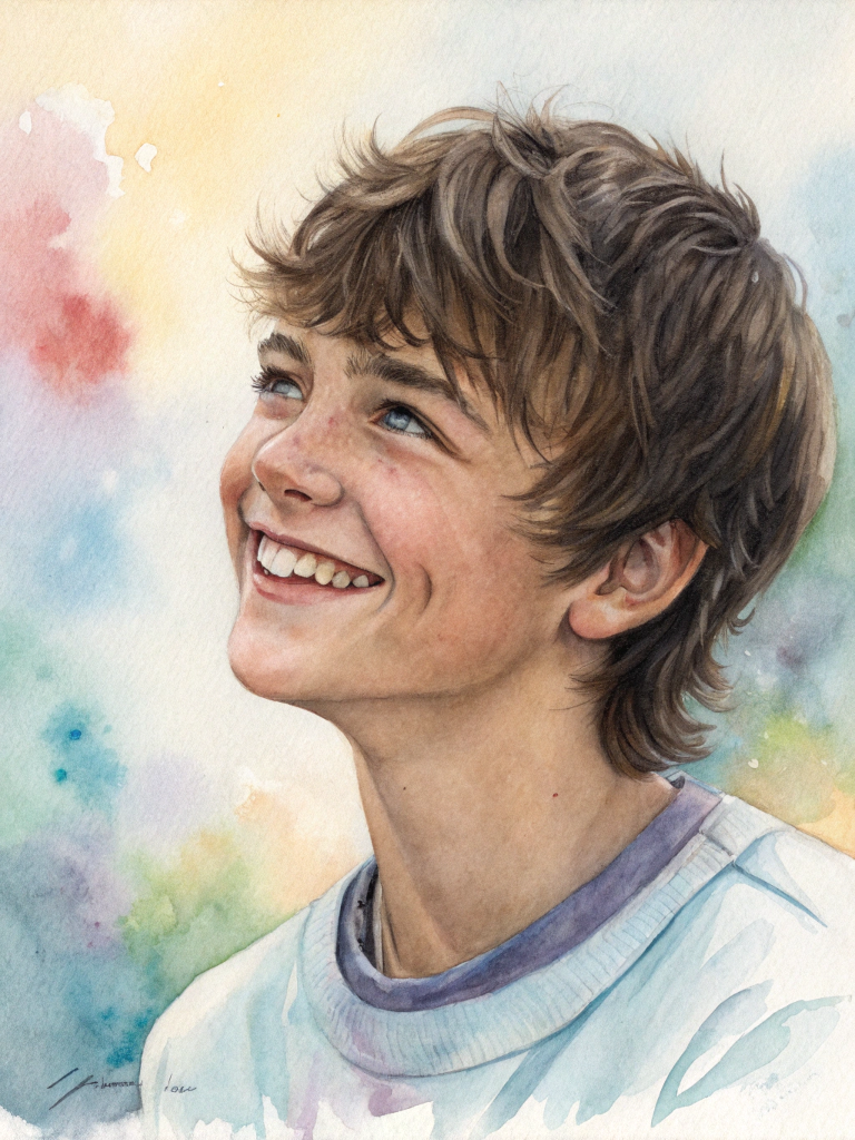 | A watercolor portrait of a happy teenage boy , with tidelines | A watercolor portrait of a happy teenage boy , with tidelines | A watercolor portrait of a happy teenage boy , with tidelines | A watercolor portrait of a happy teenage boy , with tidelines |