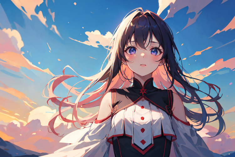 프롬프트: (((masterpiece))),best quality, illustration,(beautiful detailed girl), a girl ,solo,bare shoulders,flat_chest,diamond and glaring eyes,beautiful detailed cold face,very long blue and sliver hair,floaing black feathers,wavy hair,black and white sleeves,gold and sliver fringes,a (blackhole) behind the girl,a silver triple crown inlaid with obsidian,(stand) on the black ((mountain)), (depth) of (field)