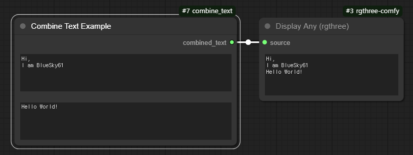 다음으로 ComfyUI화면에서 우클릭을 하고 Combine Text Example을 찾아 노드를 추가하면 아래와 같습니다.
