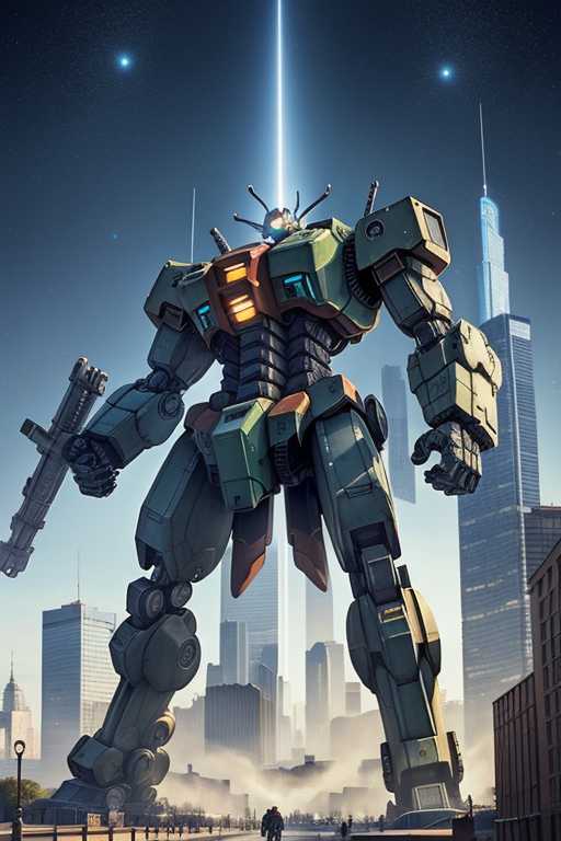 그래서 이렇게 생성을 하면 (잡음 제거 강도는 0.7) 아래와 같이 건담스타일 로봇이 생성됩니다.