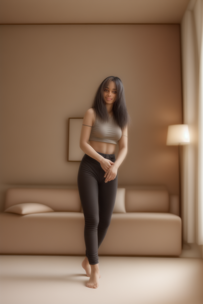 이번엔 아래 왼쪽의 여성 이미지를 입력하고 그냥 [Queue Prompt] 를 눌렀을 때의 결과입니다(아래 중간). 보시는 것처럼 아무 프롬프트를 조정하지 않았음에도 왼쪽 이미지를 바탕으로 새로운 스타일의 이미지를 생성했습니다. 여성의 자세, 소파, 그리고 스텐드의 위치를 보면 상당히 원 이미지를 반영했음을 알 수 있습니다. 참고로 맨 오른쪽은 잡음제거 강도(denoise)를 0.3으로 낮게 잡았을 때의 결과로 원본 이미지와 거의 비슷함을 알 수 있습니다.