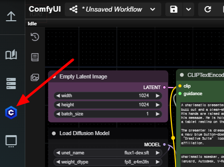워크플로 불러오기는 PC ComfyUI에서 워크플로 불러오는 것과 동일합니다. 이미지나 JSON 파일을 그냥 화면에 떨어뜨려주면 됩니다. 메뉴에서는 아래 그림과 같이 ComfyUI라고 쓰여진 오른쪽 부분을 클릭하고 "Browse"를 클릭하면 자신의 PC 에 있는 파일을 선택할 수 있습니다.