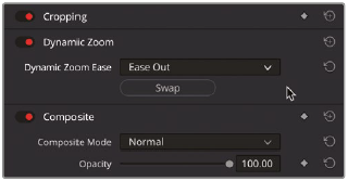 - Inspector에서 Video 탭을 누르고 Dynamic Zoom을 활성화시킨 후, Linear를 Ease Out으로 설정