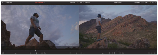 - Video 2에서 PINA BLANCA 44 의 시작부분으로 간 후, In point 추가. 2초쯤 후, 남자가 바위위에 올라선 순간에 Out