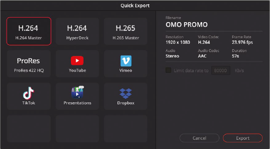 빠르게 내보내기(Quick Export)