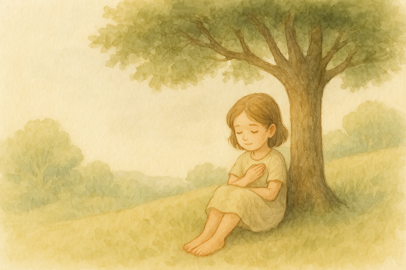| (내 마음에/도/ 같은) 5-1(8)번 씬: 작은 소녀가 슬픈 얼굴로 가슴에 손을 올리고 노래를 부른다.  |