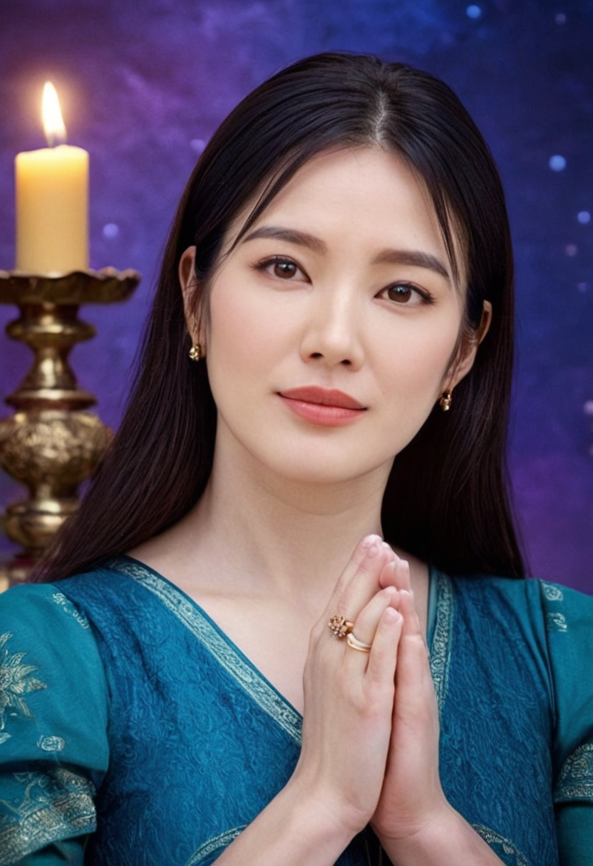 아래는 프롬프트를 "a woman, praying"이라고 입력했을 때의 결과입니다. 헐... 송혜교님 얼굴이 들어 있기는 한데 완전 성숙한 분위기의 여인이 되어버렸네요~ㅎ