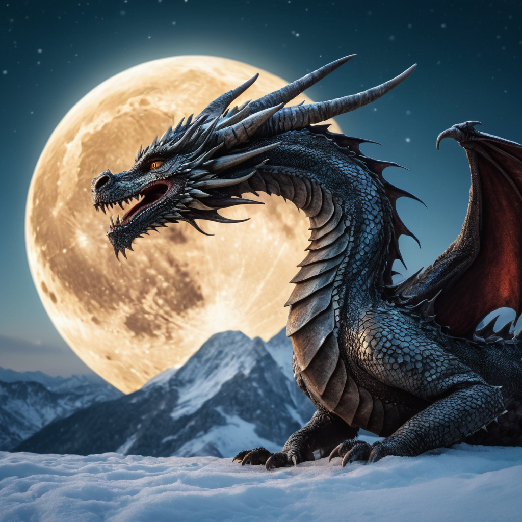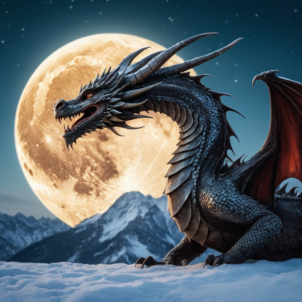 a dragon, snow, moon, light, intricate, elegant, sharp focus, beautiful dynamic, highly detailed, very sleek, professional fine detail, cinematic, dramatic ambient bright colors, perfect, warm color, epic composition, striking, brave, attractive, elite, best, vivid, clear, coherent, advanced, creative, cute, artistic, trendy, cool, gorgeous, awesome