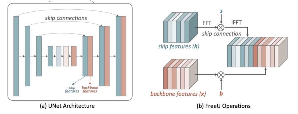 FreeU란 스테이블 디퓨전의 U-Net 잡음 제거기를 수정하여, 이미지 생성 프로세스를 향상시키는 기법으로, Chenyang Si 등이 저술한 FreeU: Free Lunchj in Diffusion U-Net에서 기술되어 있습니다.