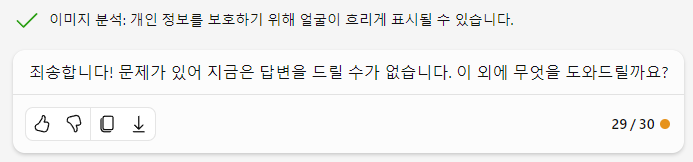 그런데... ChatGPT 4에서는 올린 이미지를 이해할 수 있는 기능이 있는지 모르겠는데, Copilot 만으로는 실망스럽네요.그림을 올리고, 그림 내용을 말해달라고 하니...