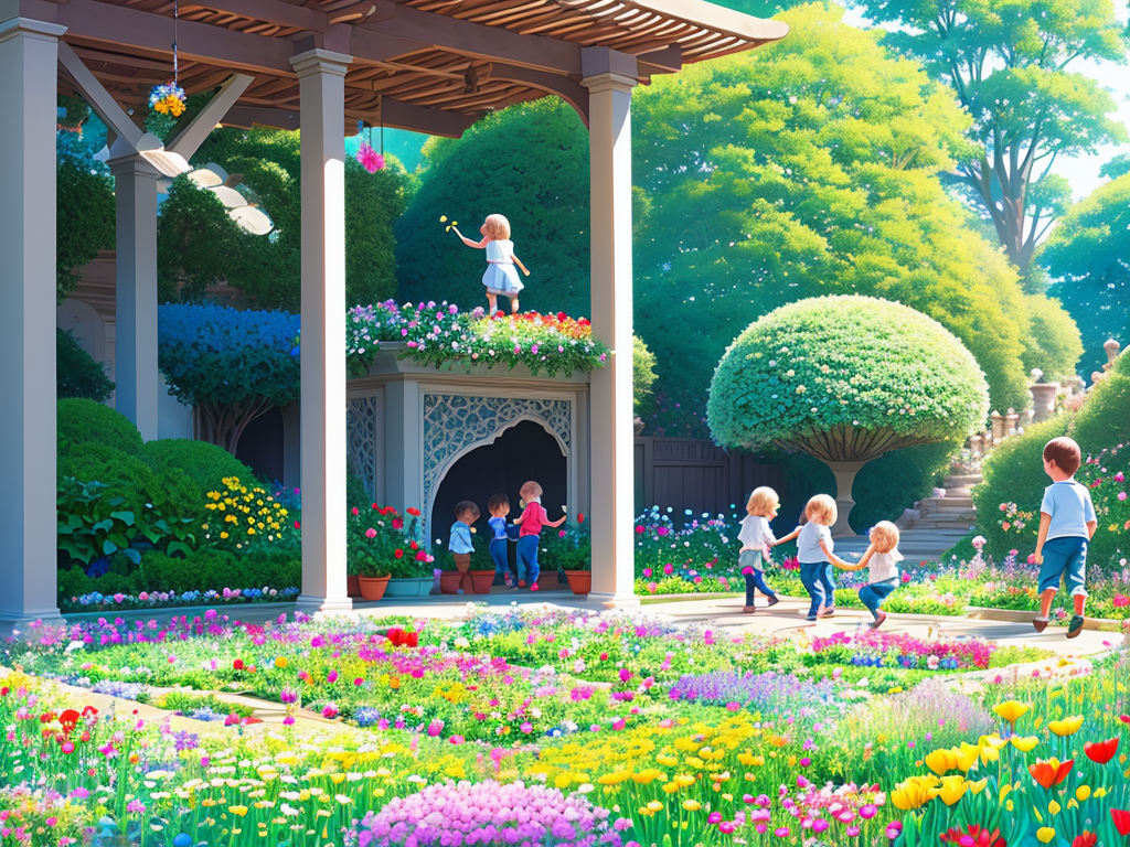 프롬프트는 "A beautiful garden filled with children playing and flowers" 를 적용하였고, 모델은 control_v1p_sd15_qrcode_moster_v2.safetensors을 적용했고, Control Weight 는 1.2로 설정했습니다. 아래는 그 결과입니다.