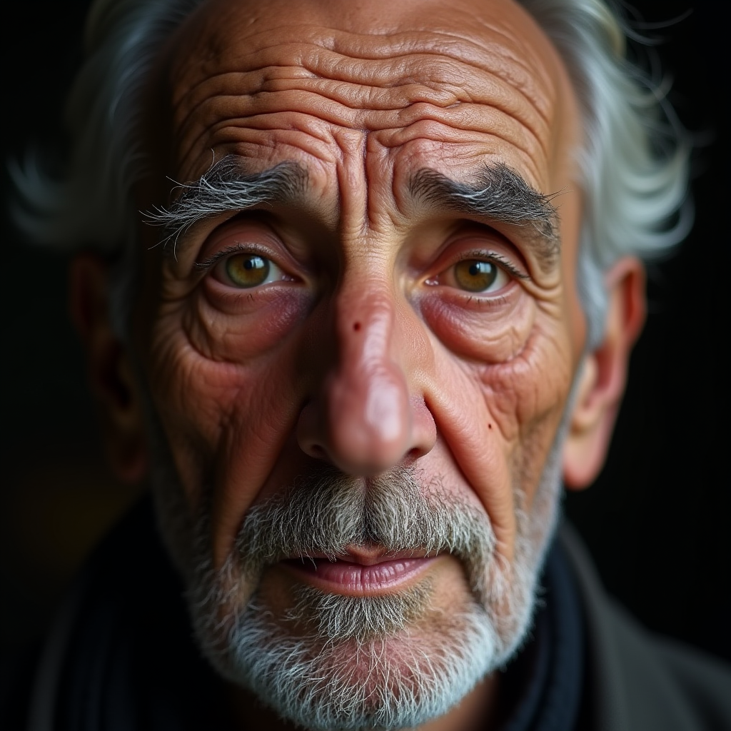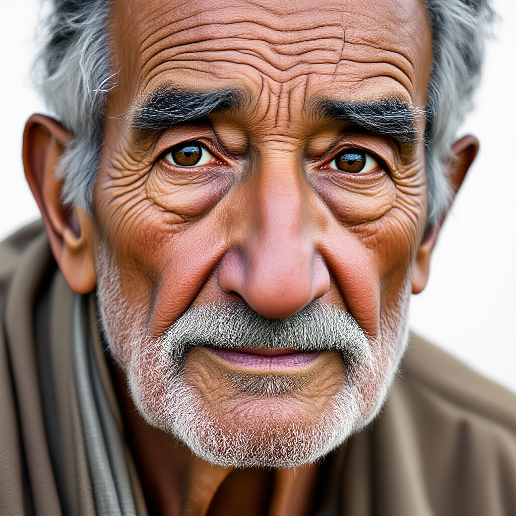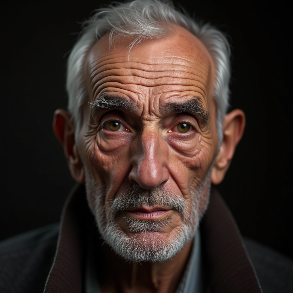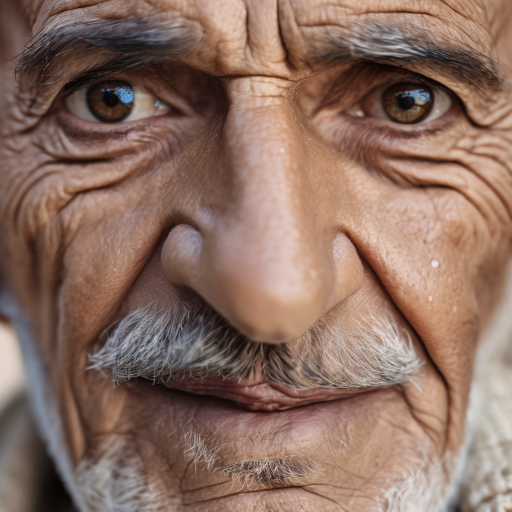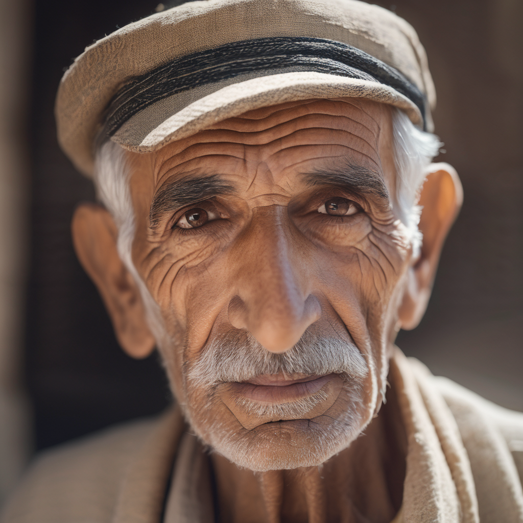 프롬프트: photo of a 85 year old Syrian man, detailed face, eyes, lips, nose, hair, realistic skin tone, freckles, skin texture