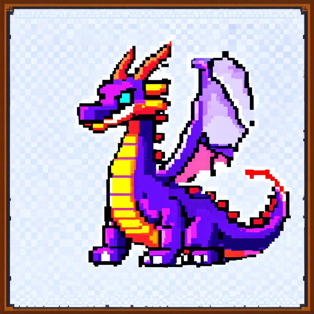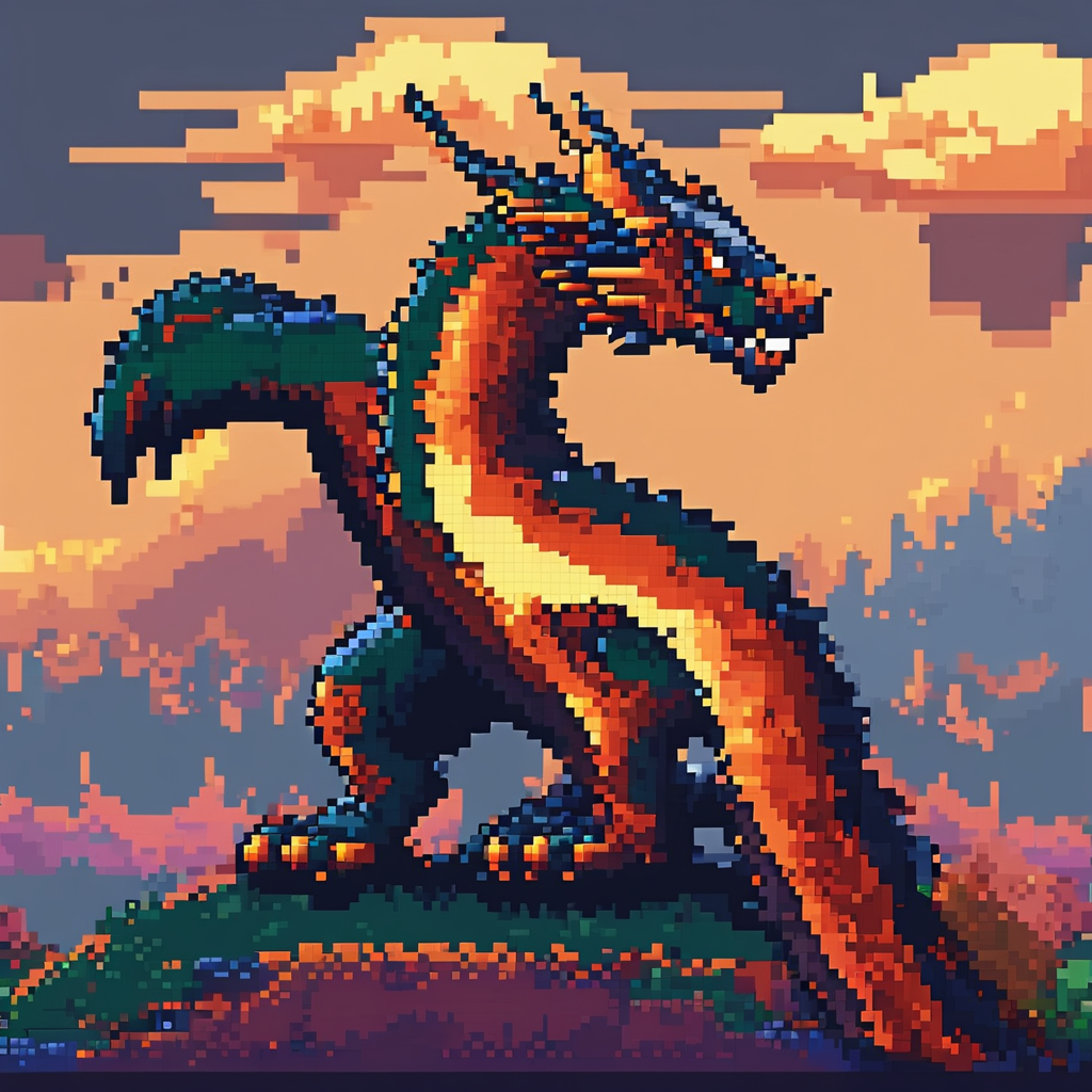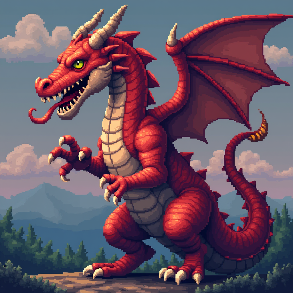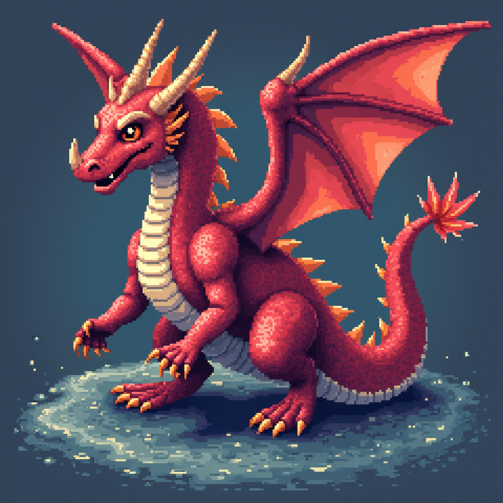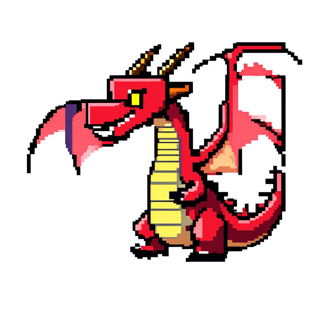 프롬프트: pixel art of a dragon. low-res, blocky, pixel art style, 8-bit graphics, pixelated, 90s video game