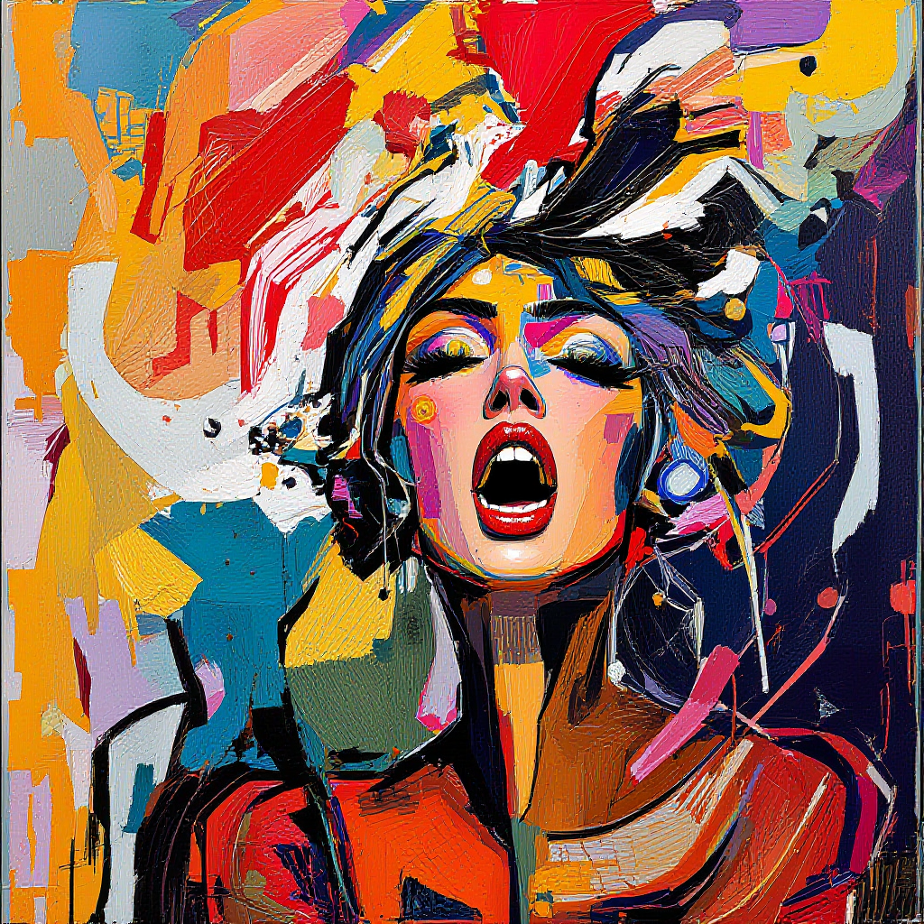 프롬프트: expressionist woman. raw, emotional, dynamic, distortion for emotional effect, vibrant, use of unusual colors, detailed