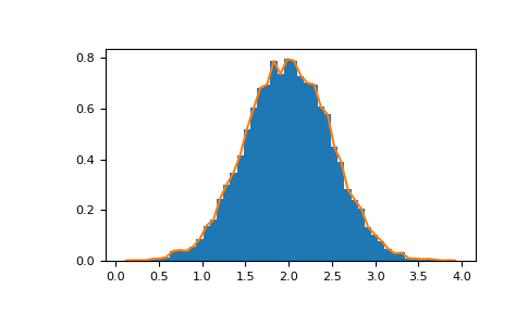 >>> (n, bins) = np.histogram(v, bins=50, density=True)